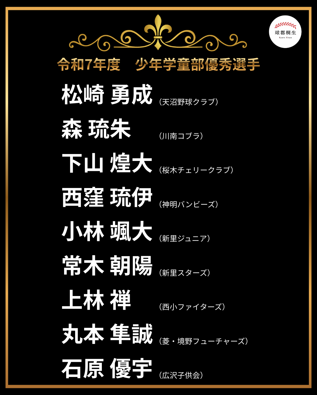 群馬県野球連盟桐生支部の 「ベストナイン表彰式」が開催されました!
