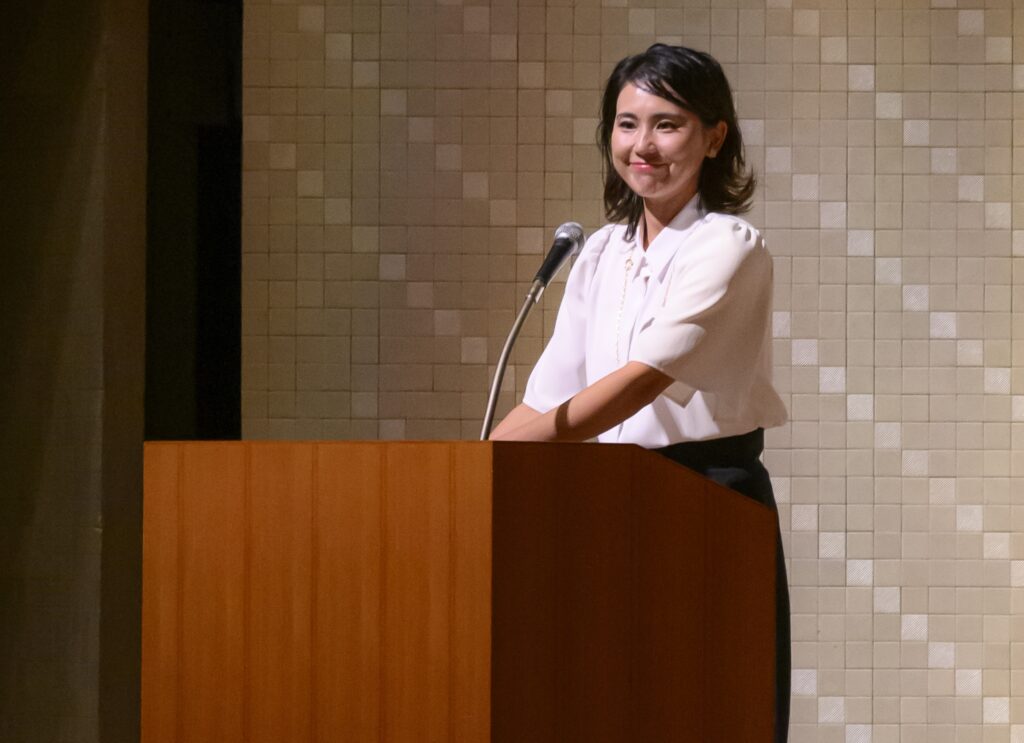 司会進行は桐生出身で、昨年現役を引退した青木宣親さん(元ヤクルト)の妻であるフリーアナウンサーの青木佐知氏。青木氏の紹介で上原氏とMCの上重聡氏が登場すると会場中から割れんばかりの拍手で迎えられました。